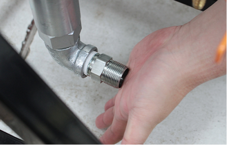 먼저 펌프 하단 연결부에 석션호스를 연결하고 그 위쪽 연결부에 도료호스(분사호스)를 연결합니다.