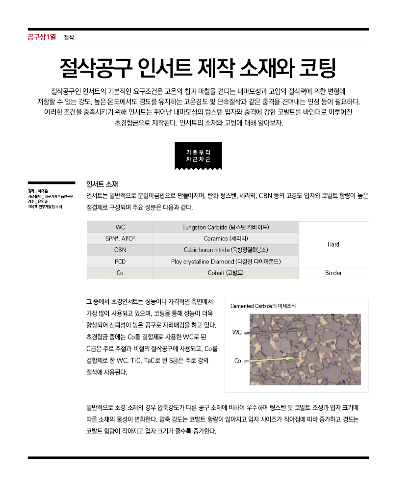 [공구상1열-절삭] 절삭공구 인서트 제작 소재와 코팅