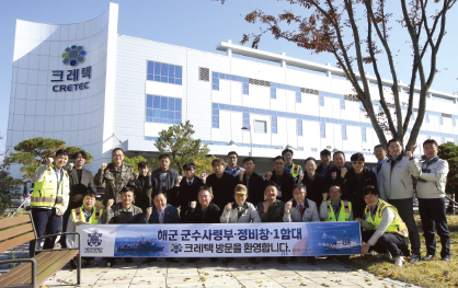 최근 해군군수사령부 등 해군 군수분야 주요 직위자 17명이 크레텍을 찾았다. 크레텍 스마트물류센터는 업계 최초로 스마트물류인증 1등급을 획득했다.