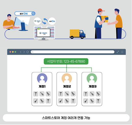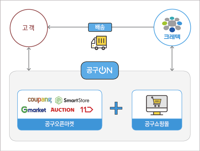 공구ON은 크레텍 주문시스템(CTX)과 연동돼 있다. 고객이 주문한 상품이 CTX에 바로 연결 주문, 직배송 처리되어 배송처리 업무를 별도로 할 필요가 없다. 뿐만 아니라 크레텍으로 직송처리를 할 경우 송장번호가 공구쇼핑몰과 오픈마켓에 자동 업데이트된다.