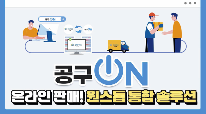 온라인상에는 수많은 쇼핑몰들이 있지만 공구상에 특화된 온라인사업 솔루션은 찾기 어렵다. 공구ON은 다양한 공구정보를 실시간으로 제공하고 통합 관리할 수 있는 공구상 맞춤형 온라인판매 시스템이다. 고객이 주문을 하면 공구상 관리자가 확인 후 재고를 보유한 크레텍으로 주문을 넘기고, 크레텍에서 상품을 바로 배송하는 방식이다.
