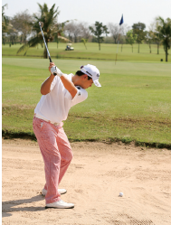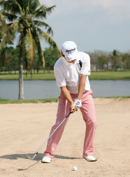 코스에는 다양한 장애물이 존재한다. 그 중 벙커는 가장 흔히 볼 수 있고, 그만큼 접할 상황이 잦다. 장애물이기 때문에 스코어를 잃는 요인이 되지만 극복한다면 스코어를 줄일 수 있다. 벙커에 볼이 들어가면 두려움에 빠지는 골퍼를 위해 네 차례에 걸쳐 다양한 상황별 탈출법을 소개한다. 첫 번째는 평평한 모래에 볼이 살짝 놓여 있고, 벙커턱이 낮은 난이도가 가장 낮은 벙커샷이다.