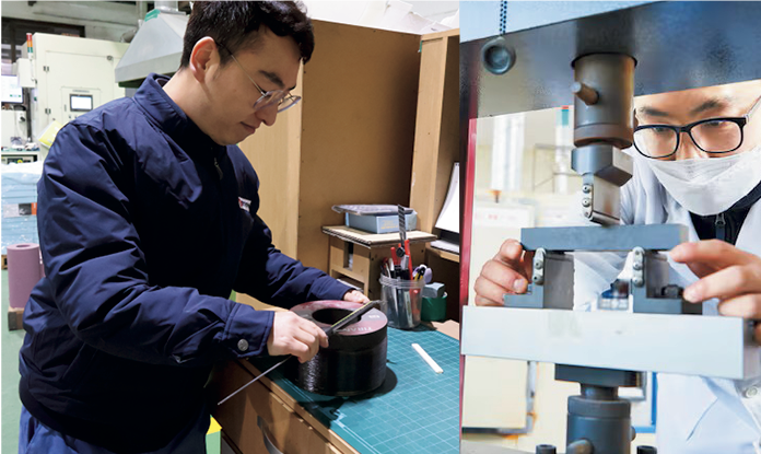 “입사 초기에 대형 절단휠 연구를 맡았는데, 당시엔 자료도 없고 AI를 이용할 수도 없어 맨땅에 헤딩이었죠. 새벽까지 샘플을 만들고 현장에서 직접 테스트하며 수없이 실패했습니다. 처음에는 내열성과 강도가 확보되지 않아 휠이 산산이 부서지기도 했고, 고객의 질책도 많이 받았죠.”
