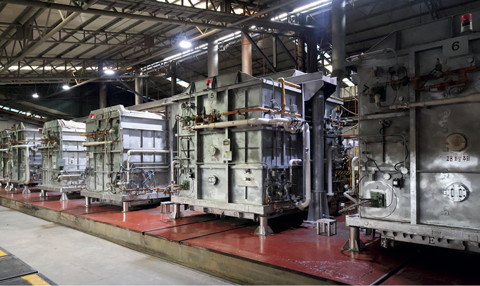 특수강 열간(700℃) 절단용 Ø1,000mm 이상급 대형 절단휠(Ø1,060~1,270mm)을 국내최초로 개발했다. 현대제철·포스코특수강·세아베스틸 등 국내 대기업의 특수강 제조 시 압연라인의 필수 소재다. 기존에는 이를 생산할 국내 기술이 없어 전량 유럽산 수입에 의존하고 있었다. 납기가 3~4개월로 길었고, 지연될 경우 공정 차질 우려가 컸다. 해상운송으로 고분자 바인더 신뢰성 저하에 의한 불량이 발생돼 대처도 어려웠다. 이에 이강수 팀장은 포항산업과학연구원(RIST)과 수입품 정밀 분석을 바탕으로 절단 성능과 고온에서도 안정적 성능을 유지하도록 내구성을 극대화하는 최적의 원재료 설계 및 배합 기술을 독자적으로 개발했다. 핵심 공정인 압축성형 및 레벨링 공정(혼합물을 금형에 충전하는 과정)을 자동화해 생산성 30% 향상과 품질 균일성 확보를 달성했으며, 세계 최고 수준의 절삭력과 수명 20% 향상을 실현했다.