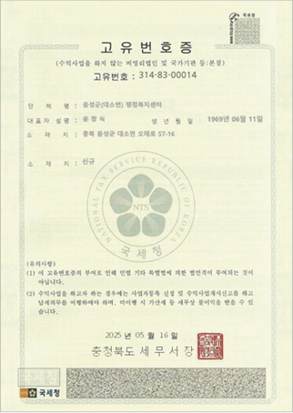 우선 전국 행정복지센터에는 구매과라는 부서가 존재하지 않는다. 그리고 고유번호증에 찍힌 ‘충청북도 세무서’라는 인장도 거짓이었다. 음성군은 충북세무서가 아닌 충주세무서에서 관리한다. 이상함을 감지한 임태원 대표는 사칭범을 추궁했고, 그 뒤로 더 이상의 연락은 없었다.