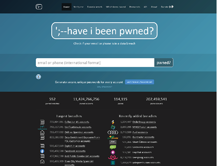 수십개 이상의 사이트에서 활동하면서 보통 2~3개의 암호를 번갈아 사용하고 있진 않은가. 만약 한 사이트에서 내 정보가 유출된다면 다른 사이트로 피해가 커지는 건 시간문제다. 페이스북을 비롯해 수많은 개인정보 유출사고가 발생하는 것도 이와 같다. ‘haveibeenpwned.com’에 접속해 이메일주소와 전화번호를 입력하면 내 계정정보와 비밀번호가 유출되었는지 확인가능하다. 해킹여부와 정보 유출이 확인된다면 비밀번호를 바로 변경하기 바란다.
