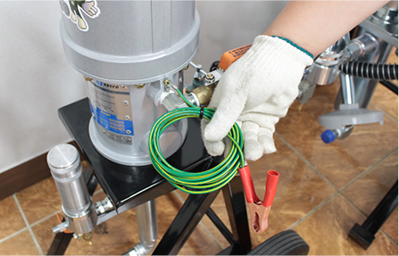또한 하스코의 모든 에어리스 펌프 모델들에는 접지선 연결부가 있습니다. 가능하면 접지한 상태에서 사용하는 것이 안전한 사용을 위한 방법입니다.