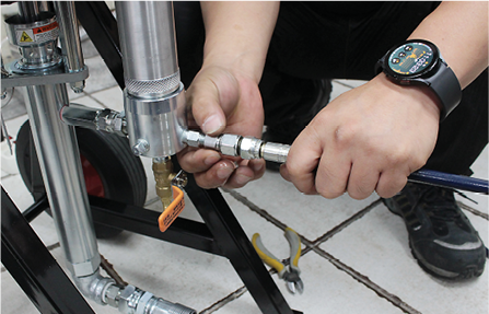 에어리스 펌프의 사용을 위해서는 압력밸브와 드레인밸브의 열고 닫는 순서가 매우 중요합니다.