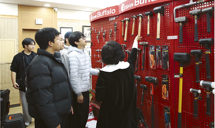 지난 11월 28일 경북과학기술고등학교 컴퓨터응용기계과 정밀설계기계과 및 스마트제어전기과 학생 일곱 명은 대구 북성로 공구골목에 위치한 세신버팔로전시장을 찾았다. 학교에서 마련한 대구광역시 탐방 프로그램의 한 코너로 전시장을 방문한 것이다.